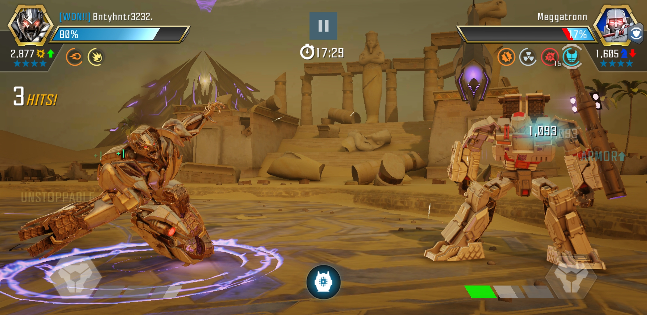 He had just finished his SP3, hoping that it would kill the Oppopent, but alas they survived, surprising him. He is more surprised that the Shock Debuff wasn't applied. "WHY WASN'T THE SHOCK APPLIED!?! THIS IS RIGGED" says Megatron. He starts brainstorming on the lack of shock debuffs, but then his mind wanders and he starts to reflect on his role in the universe. He looks at his hand and has a flashback. He remembers when the Commander assigned him to defend their base, which was an awful decision, since Megatron knows he's better for offense. But Megatron complied and he has been waiting for the time someone would attack the base.